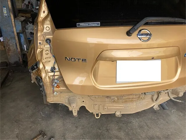 新潟市西蒲区 新潟市西蒲区 日産ノート リヤバンパー テールランプ中古部品交換 森自動車工場