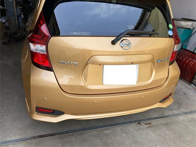 新潟市西蒲区 日産ノート リヤバンパー テールランプ中古部品交換
