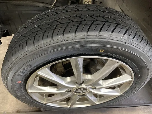 スタッドレスタイヤから普通タイヤに付け替えていきますが、タイヤがすり減っていたので新しいタイヤに組替を行いました。