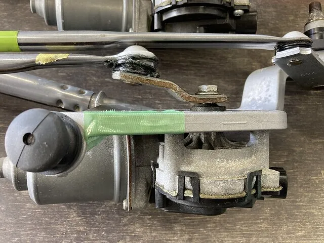 添付画像は作業後の様子で、新品のワイパーリンクがしっかり取り付けられていることが分かります。
