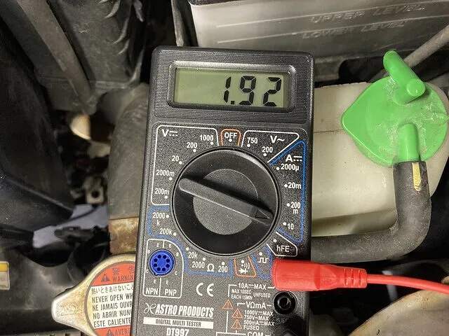 点検すると、2A~3A前後の電流が常に流れている状態でした。これではエンジン停止後にバッテリが一日持たずに上がってしまいますし、何より車両火災の危険もあります。