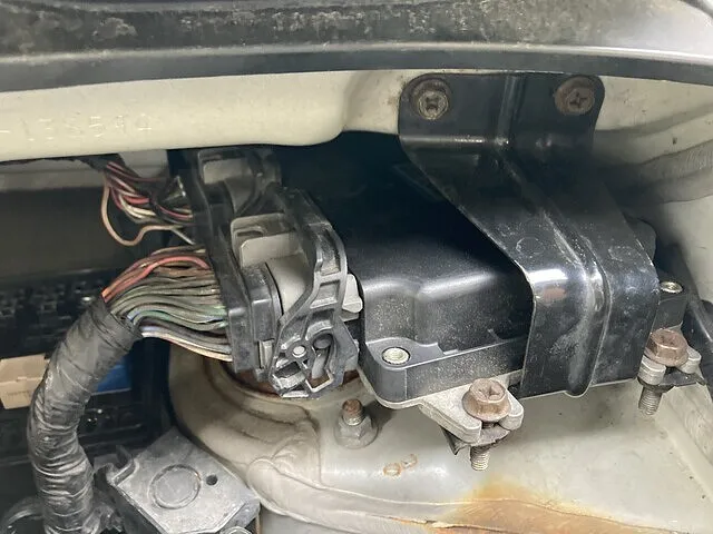 暗電流を点検中、エンジンコンピューターが作動しているのがわかりましたが、一度バッテリのマイナスターミナルを取り外して、再度暗電流を測定すると、正常に電気が切断されていました。様々な故障コードや症状から残った原因はエンジンコンピューターの内部故障が考えられました。